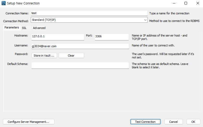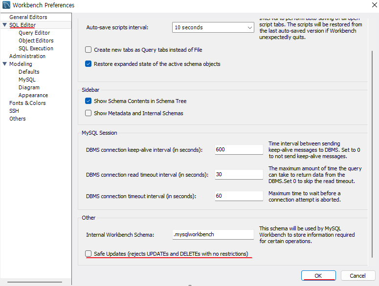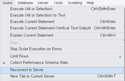 이후 MySQL의 메인화면으로 돌아와