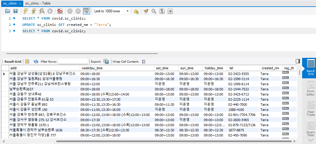 이후 해당 쿼리문을 다시 실행시켜 보면 데이터의 수정이 잘 되어 있는 것을 확인할 수 있다.
