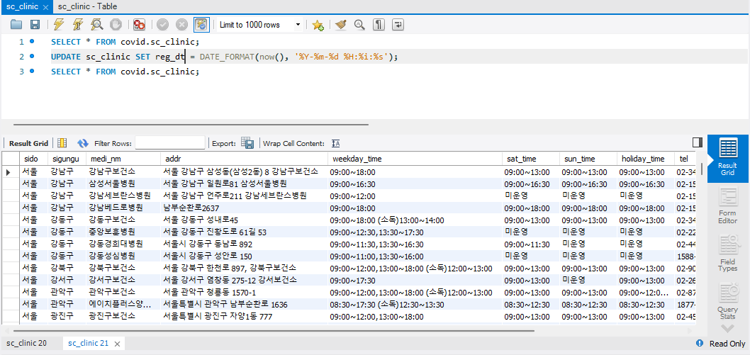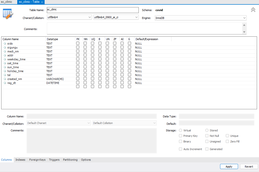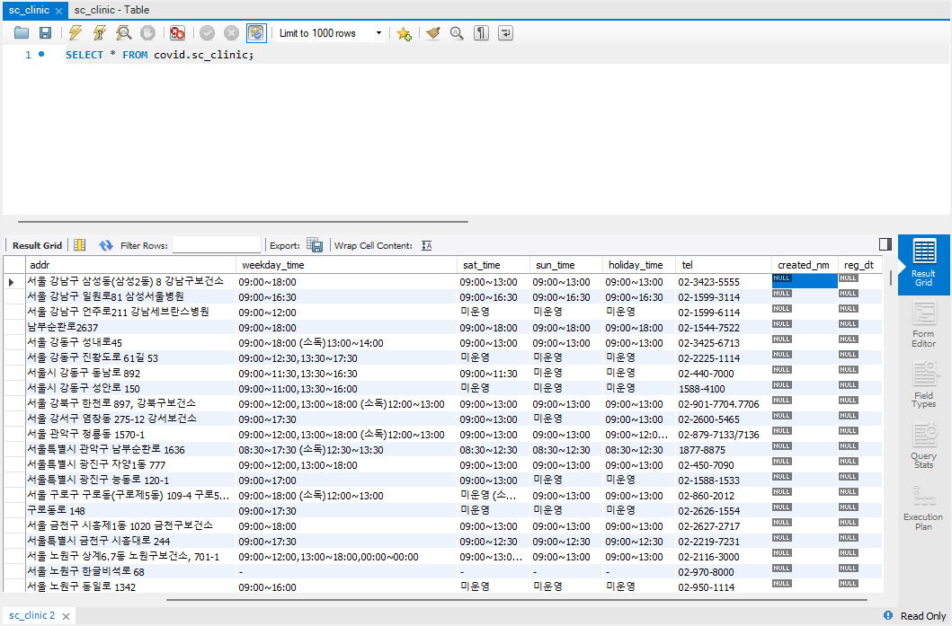 알아보기 쉽도록 코로나 선별 진료소에 대한 스키마인 만큼 COVID로 설정해 주었다.