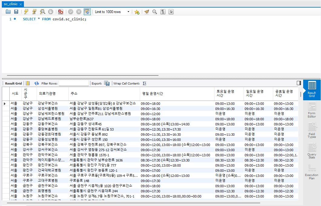 import 하기 위한 문서는 코로나 선별진료소의 공공 데이터를 활용하도록 한다.