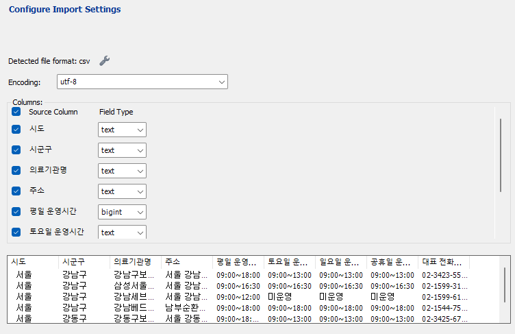 Table Data Import를 진행하면 다음과 같은 창을 만날 수 있는데,