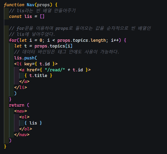 앞서 속성으로 전해준 값들은 모두 props에 저장된다고 했으므로, props에서 꺼내어 함수를 작동하도록 하면 된다.